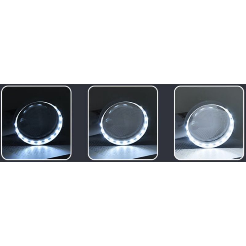 Illuminazione composta da LED bianchi da 25°. Lente aplanatica (senza distorsione dell'immagine) e acromatica (senza iridescenza).